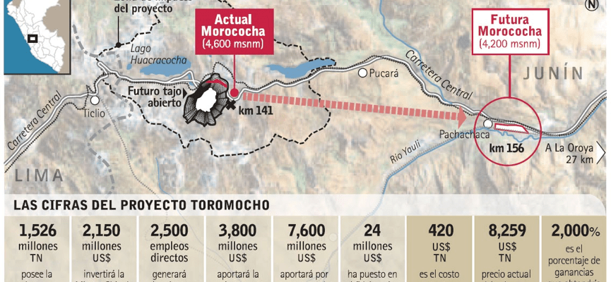 Toromocho is one of the world’s largest unexplored mines, with 1.52 billion tons of ore, grading 0.48% Cu, 0.019% Mo, and 6.88 g/t Ag. The exploitation of Toromocho copper mine has a long history that can be traced back to the 16th century. Historically, the ownership of the copper mine has been changed several times. In 2008, Chinalco, a critical state-owned enterprise directly supervised by the central government from China, spent $3 billion to acquire the development rights and mining rights of Toromocho. This project also became the most significant mining project invested by Chinese companies overseas at the time.