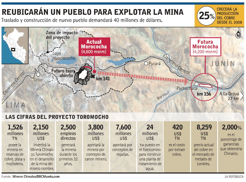 Unlike the above two cases, at first, Chinalco was regarded as a model for Chinese enterprises to develop mining in Peru at the first stage. Because of the nature of the Toromocho open-pit mine, copper mine development would inevitably lead to a negative societal and environmental impact on local communities. Community relocation is thus the imperative option to further push forward the progress of the project copper mines.