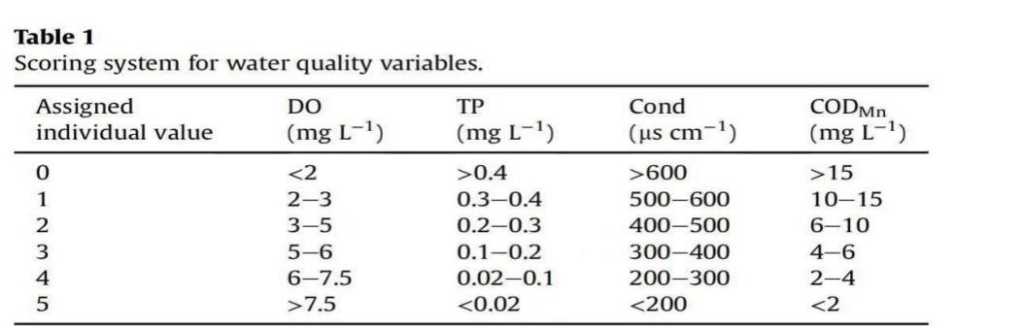 In order to test the effect of the regulations and their implementation, a new assessment method is generated. Regarding Qinhuai River, the Nanjing Government developed a bacterial-based index of biological integrity (Ba-IBI). Ba-IBI is an effective and reliable tool for evaluating the ecological status of the Qinhuai River basin, which can complement the existing ecological assessment approaches for urban rivers. (Burgos-Caraballo, S., Cantrell, S.A., Ramírez, A., 2014) The primary parameters for the index of water quality (IWQ) were derived from principal component analysis (PCA) of measured physicochemical variables in which each primary parameter was scored based on the Environmental Quality Standard for Surface Water in China (2002a) into five classes of water quality of the standard (Table 1), which is then summed to obtain the value of IWQ. (Wang, B., Yang, L., 2002.)